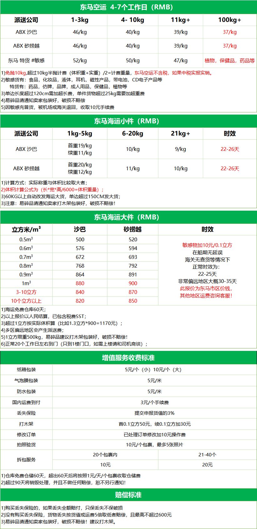 (2026年3月10日执行)海运10立方以上价钱的货物到仓马上装柜出货,不存货在仓库!!!